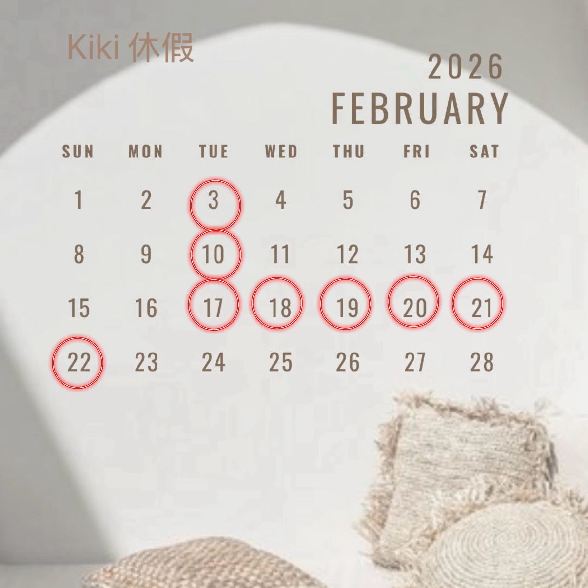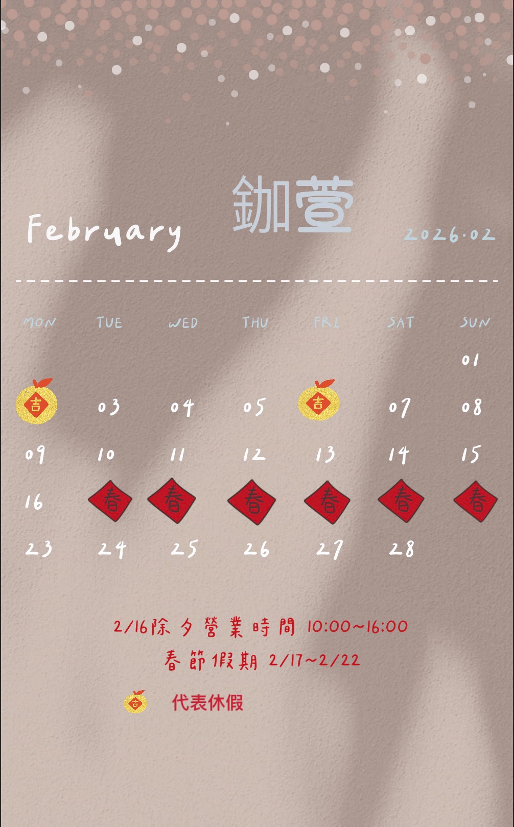 設計師二月休假表